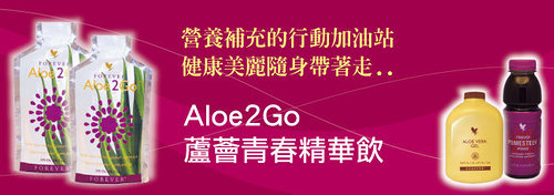「神奇蘆薈凝膠汁」+「青春石榴活力露」= Aloe2Go蘆薈青春精華飲